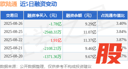 本站消息,8月26日,欧陆通(300870)融资买入1.52亿元,融资偿还3.3亿元,融资净卖出1.78亿元,融资余额9.29亿元。